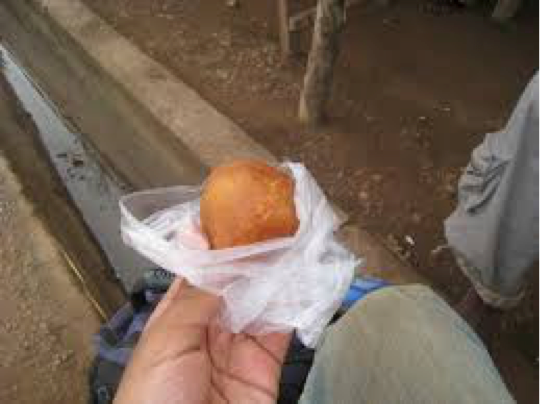 Fried Dough, that’s exactly what Bowl Fruit its. Baked balls of bread, then deep fried. And oh, sbowlfruito good. I’m from the south, so I’ve fried a lot of things in my life, and everyone has been to the county and state fairs where the vendors sell almost anything fried, but never have I had something so good as bowl fruit. Typically, in America I would shy away from something so “unhealthy,” but let’s think about this, when walking is my main form of transportation in the village, I think I can afford to consume a ball of fried dough. This savory snack also can be found sold on the tops of market ladies heads just about anywhere.