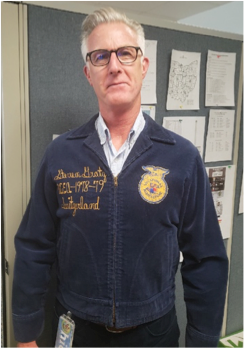 In between receiving the American Farmer Degree in 1980 and presenting the staff with my jacket in 2018, a lot of memories have been made with the FFA jacket. Not my jacket, but the jackets students purchased and proudly wore during my seven years as a teacher of agriculture. My 15 years the executive secretary for the Ohio FFA Association afforded me the opportunity to get our FFA officers jackets tailored fit on our visit to Universal Lettering Co. in Van Wert, OH.  I’m sure the 220+ state officers I worked with have a few memories of those trips to Van Wert.